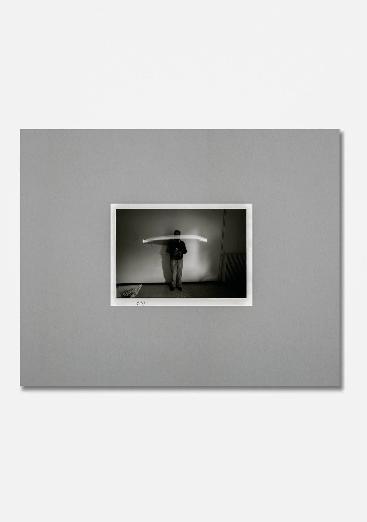 Di sguincio—meaning “aslant,” glimpsed from the corner of the eye—brings together more than a hundred black-and-white photographs Guido Guidi made with small-format cameras between 1969 and 1981. These pictures come from his earliest experiments with the camera: shot without looking through the viewfinder and struck by a harsh flash, they catch people, bodies, gestures, small happenings, and scraps of space in abrupt, sometimes abrasive encounters. Formally stark and occasionally close to abstraction, they remain rooted in the intimate and nearby—his family home in Cesena, friends in Treviso, and colleagues at the University of Venice—forming tender personal works that probe the performative tension at the heart of images.