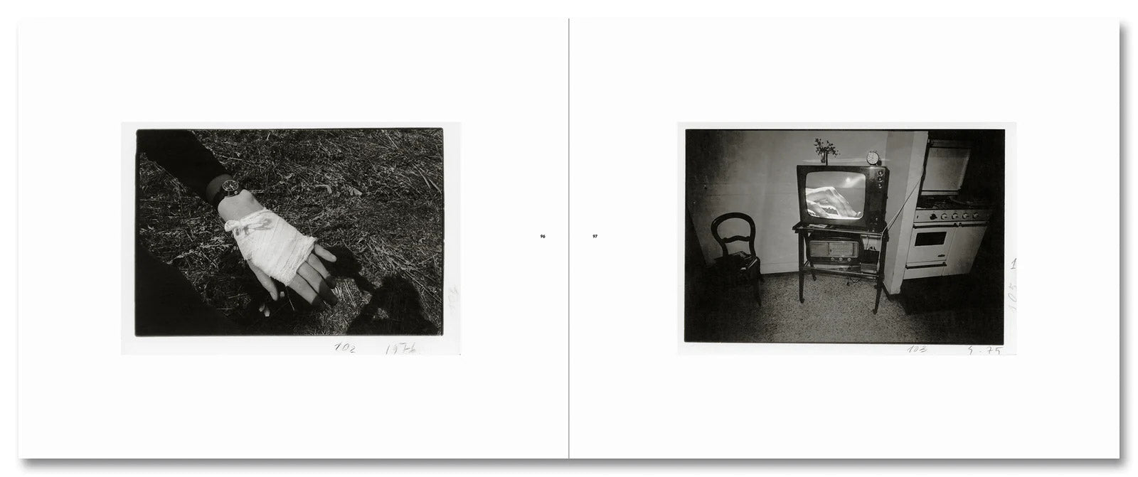The book reproduces Guidi’s original prints, with their high contrast, unexpected blur and sharpness, and slanted, sometimes barely legible handwritten notes. Brimming with the spirit of early invention and collaboration, these fragments also absorb the psychological, social, and political upheavals of an Italy in crisis, filtering influences from neorealism to postmodernism in a search for new forms. Time—recorded, felt, and manipulated—runs through them as a quiet constant. In Di sguincio, we encounter “anti-documents”: stamped, annotated, sometimes artificially aged images that gently undermine photography’s claims to truth and reveal the beginnings of Guidi’s lifelong exploration of the medium’s possibilities.
