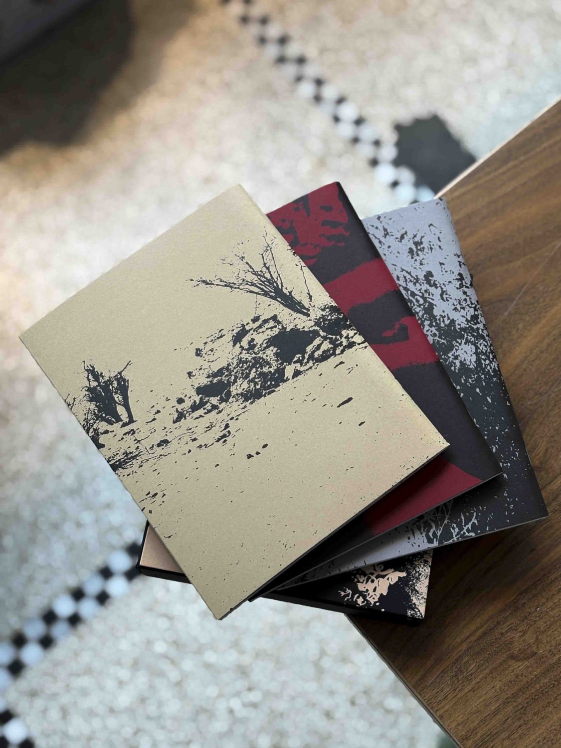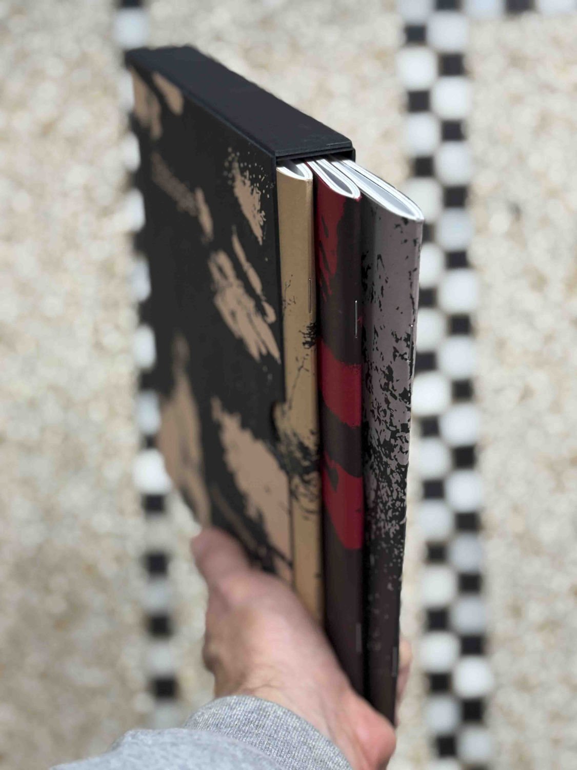 Ouvrage présenté dans un coffret en trois parties, tiré à 250 exemplaires numérotés et signés avec 3 tirages sélectionnés au hasard.