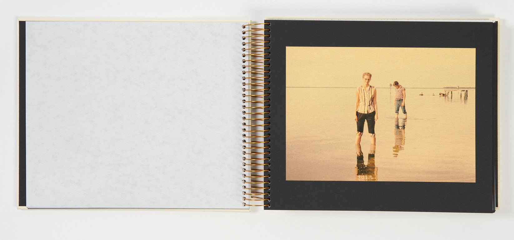 Gold leaf is also famously delicate, and its fragility mirrors that of color photography itself. Most color slides are not built to last; their chemistry fades, and with it the stories they carry. By printing these images onto gold, Shulman creates a charged contrast between durability and disappearance, between what we try to keep and what time steadily erases. As light moves across the surface, the images seem to waver—appearing, slipping away, and returning again—held in a constant state of presence and absence.